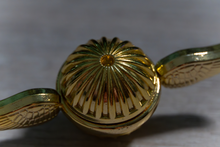 Ich habe mit zwei Zwischenringen (10mm und 16mm) und meinem Immerdrauf-Objektiv die Makrowirkung getestet. Verwendet habe ich das Sony SEL18-135. Alle Fotos habe ich mit einer Brennweite von 135 – also ausgefahrenem Zoom – geschossen. Weiterhin habe ich darauf geachtet, dass ich stets einen Abstand von ca. 30cm zwischen Objektiv und Objekt – in diesem Fall einem goldenen Schnatz – halte. Ich habe mich für diese Entfernung entschieden, da ich ohne Zwischenringe mit dem Autofokus des Objektives bis auf diese Nähe an das Objekt heran gehen konnte, damit es scharf abgebildet wird.